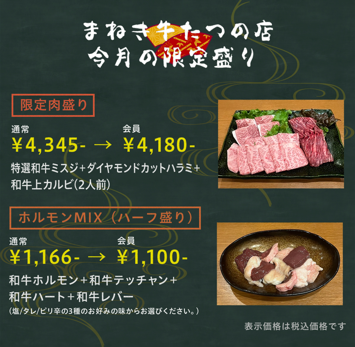 播州焼肉・ホルモンまねき牛のメニューはコチラ